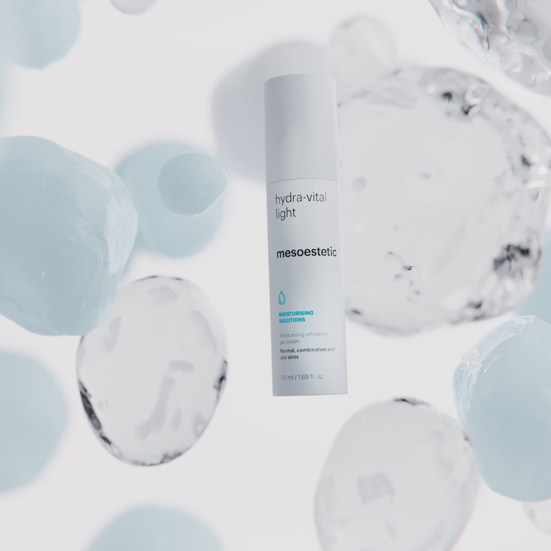 Mesoestetic Hydra‑Vital Light is a refreshing, ultra-light gel‑cream moisturizer designed for normal, combination, and oily skin. This 50 ml formula combines cross-linked hyaluronic acid—with both high and medium molecular weights—for immediate and long-lasting hydration, restoring luminosity, softness, and comfort. Enriched with Urban D‑Tox, it forms a protective barrier against environmental pollutants and oxidative stress, while plant-based polysaccharides reinforce the skin's natural barrier, reducing water loss and enhancing resilience.